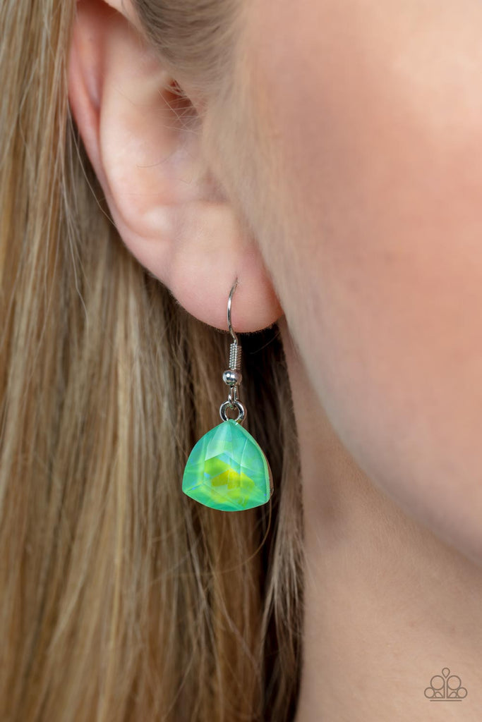 A collection of dreamy trilliant-cut rhinestones in iridescent shades of green and pink fall in line along the collar in a majestic finish. Features an adjustable clasp closure. Due to its prismatic palette, color may vary.