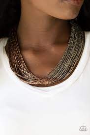 Brushed in a flashy metallic finish, countless strands of copper seed beads converge with strands of gunmetal seed beads, creating colorful layers below the ...