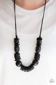 Paparazzi Accessories Necklace: Shiny black wooden beads and discs are threaded along black cording for a summery look. Features an adjustable sliding knot ...